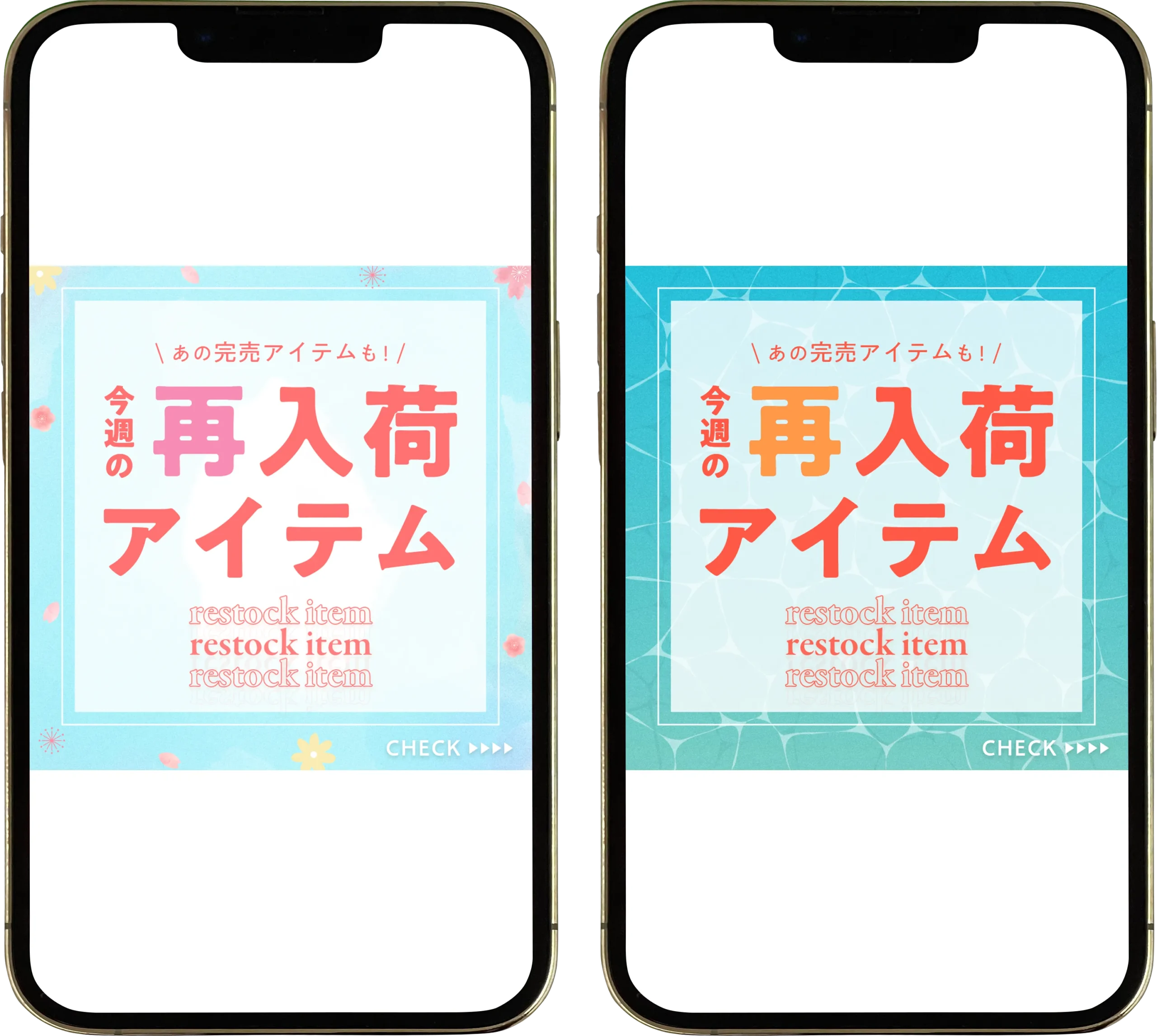 ファッションECサイトに掲載する再入荷アイテム告知バナーを仮想案件として制作しました。